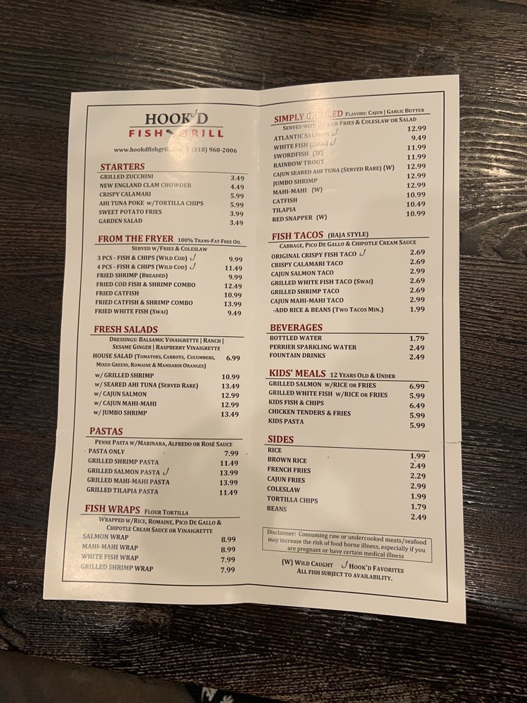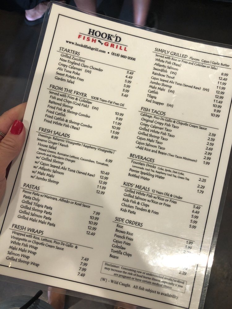 Hook’d Fish Grill, located in Northridge, CA, offers a diverse menu featuring fresh seafood dishes. With options like hand-battered wild cod fish and chips, grilled Atlantic salmon, and delicious starters like Ahi Tuna Poke, this spot caters to seafood lovers. Customers have praised the consistency and freshness of the food, along with the friendly service and clean environment. The customizable grilled fish options, such as Cajun seasoning or butter, add a unique touch to the dining experience. The reasonable prices and ample parking make it a convenient choice for a casual seafood meal. Overall, Hook’d Fish Grill provides a satisfying dining experience with a variety of options to please any seafood craving.